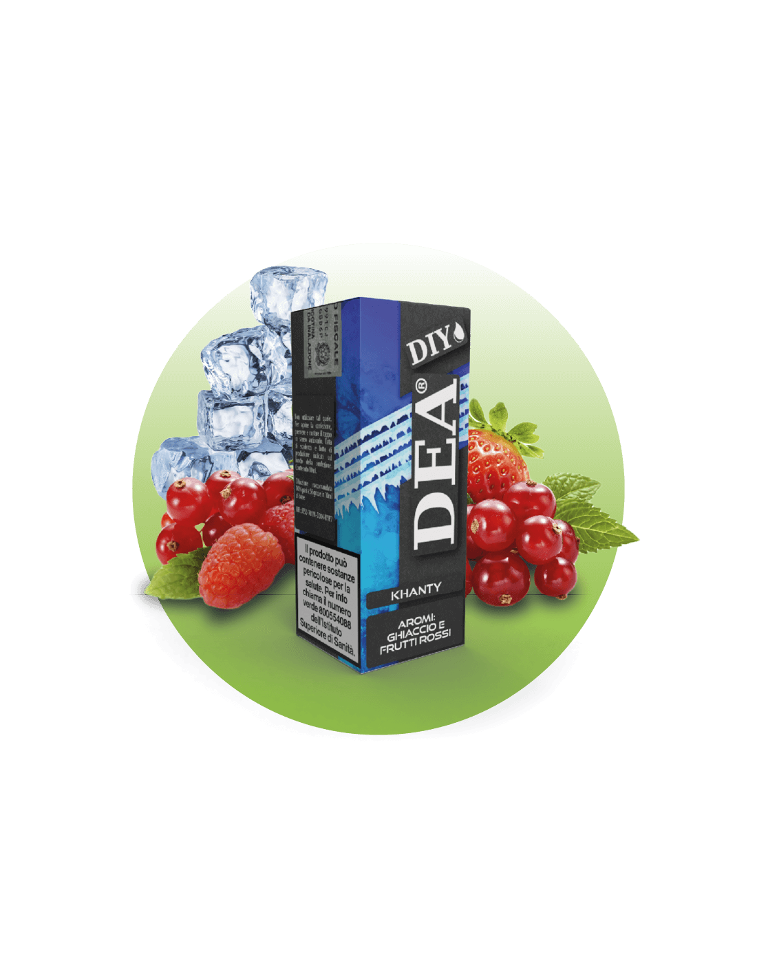 19 Khanty DIY Aroma Concentrato 10ml Frutti Rossi e Ghiaccio - DEA, formato per essere miscelato e diluito. Scegli tra una vasta gamma di gusti diversi la tua miscela preferita. Sarà sufficiente diluire il prodotto al 10% con una base VG Glicerina Vegetale per ottenere un liquido pronto da svapare.
