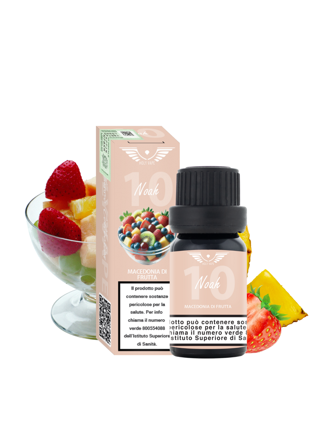 Una macedonia di frutta fresca e colorata, dove sapori dolci, succosi e leggermente aciduli si incontrano in perfetto equilibrio. Un’esplosione fruttata, ideale per uno svapo estivo e rinfrescante.