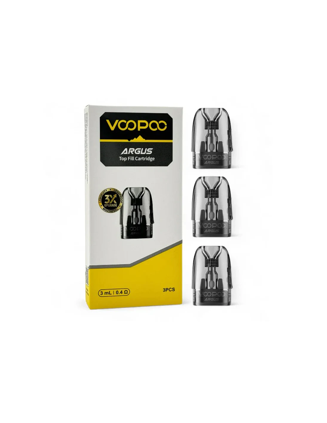 Pod di ricambio Argus Top Fill con coil integrata da 1,0 ohm o da 0,4ohm (non sostituibile) e ricarica del liquido sulla parte superiore in confezione da 3 pezzi.