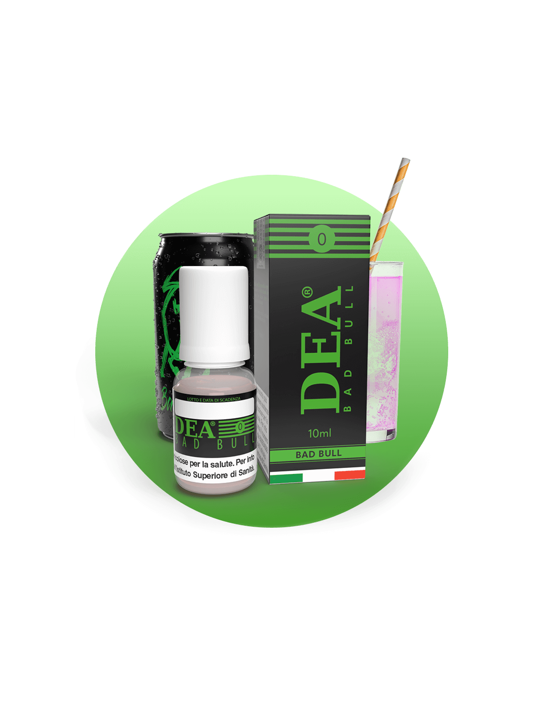 Bad Bull Liquido 10ml - DEA Flavor è la riproduzione più fedele della notissima bibita alla taurina. Energizzante e dolce, per svapate piacevoli e intense.