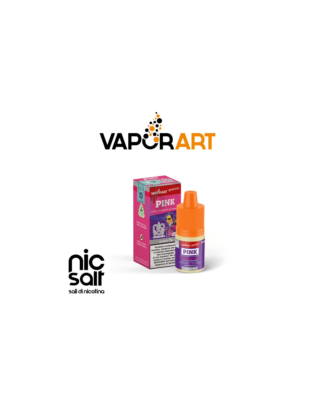 Pink Sali di Nicotina - VaporArt è un prodotto Made in Italy della linea Nic.Salt VaporArt, fornito in flacone di plastica 10ml e con tappo di sicurezza. Potrai scegliere la tua fragranza preferita con gradazione di nicotina da 10mg/ml o 20mg/ml. I sali di Nicotina si differenziano dalla nicotina libera per un assorbimento più rapido al corpo, una sensazione meno irritante alla gola e una soddisfazione più realistica della sigaretta tradizionale, tutto ciò aiuterà a ridurre il desiderio in modo graduale e più veloce. La sua concentrazione 50VG/50PG ti permetterà di utilizzare sistemi MTL e Cloud Chasing per uno svapo da guancia e da polmone.
