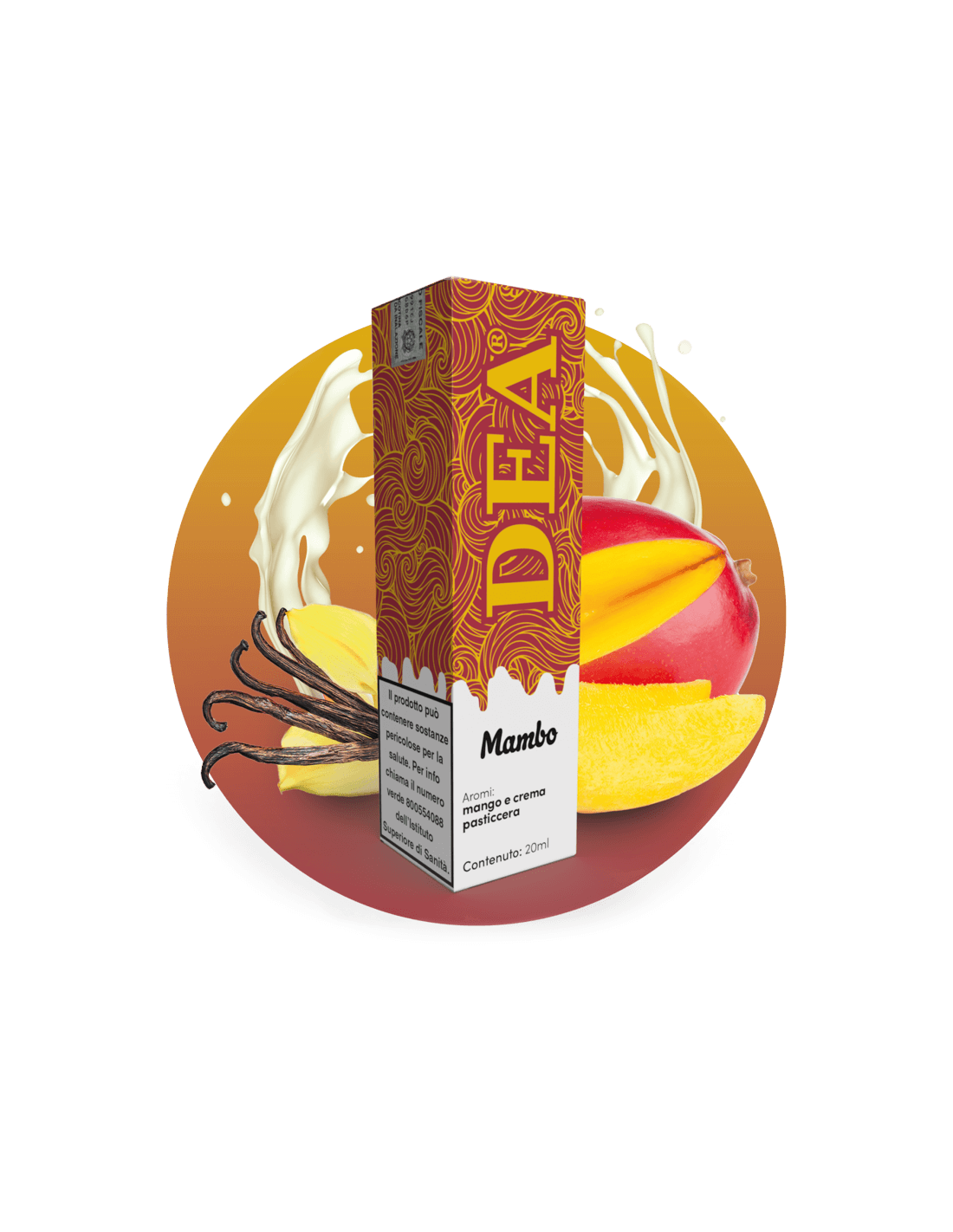 Mambo Aroma Shot 20ml - Dea Flavor è un Aroma Scomposto, formato per essere miscelato e diluito. Il sistema Shot permette di preparare con semplicità la tua miscela preferita. Sarà sufficiente aggiungere 30/40ml di base VG Glicerina Vegetale all’aroma per ottenere un liquido pronto da svapare.