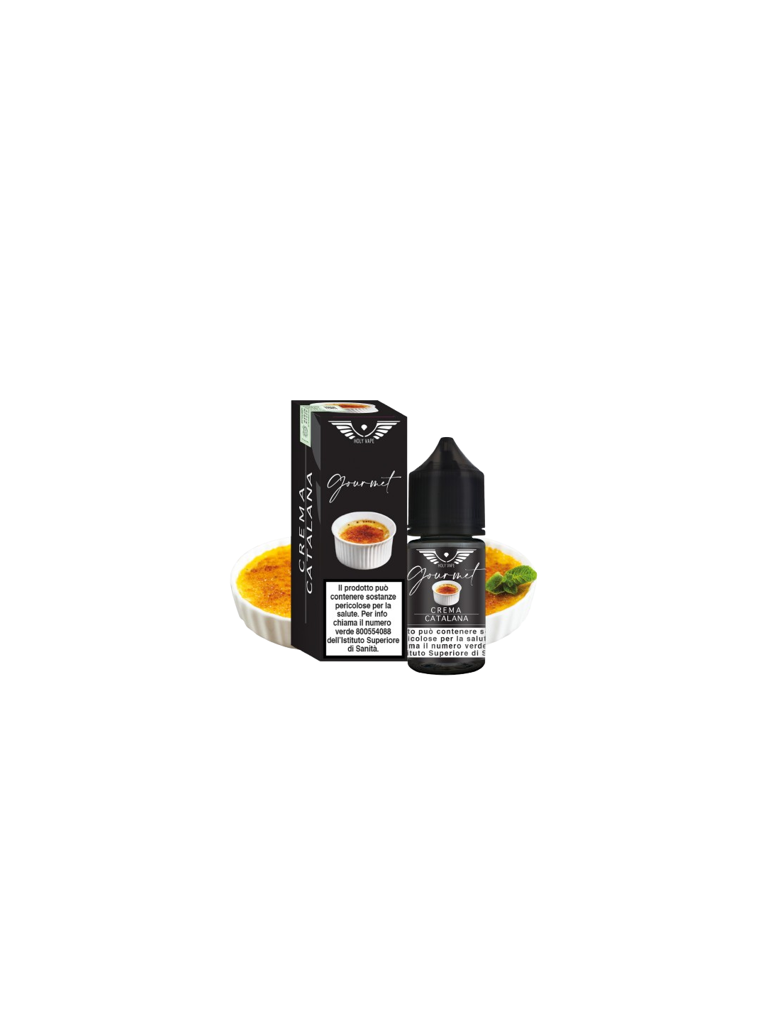 Crema Catalana Mini Shot Aroma - Holy Vape in flacone da 30 ml è un Aroma Scomposto, formato per essere miscelato e diluito. Il sistema Mini Shot permette di preparare con semplicità la tua miscela preferita. Sarà sufficiente aggiungere 10/20ml di base VG Glicerina Vegetale all’aroma per ottenere un liquido pronto da svapare.
