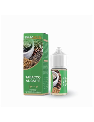 Tabacco al Caffe' Mini Shot Aroma 10+10 - SvapoNext in flacone da 30 ml è un Aroma Scomposto, formato per essere miscelato e diluito. Il sistema Mini Shot permette di preparare con semplicità la tua miscela preferita. Sarà sufficiente aggiungere 10/20ml di base VG Glicerina Vegetale all’aroma per ottenere un liquido pronto da svapare.
