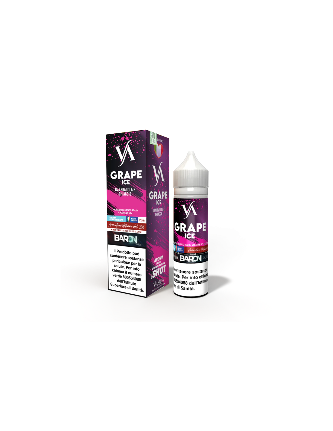 Grape Ice Aroma Shot 20ml 0mg - Valkiria è un Aroma Scomposto, formato per essere miscelato e diluito. Il sistema Shot permette di preparare con semplicità la tua miscela preferita. Sarà sufficiente aggiungere 30/40ml di base VG Glicerina Vegetale all’aroma shot per ottenere un liquido pronto da svapare.