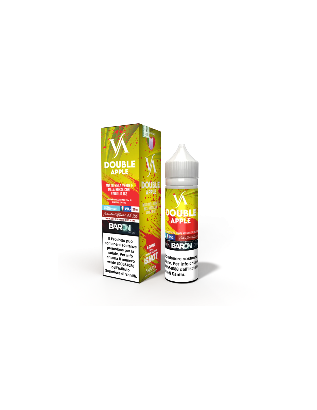 Double Apple Aroma Shot 20ml 0mg - Valkiria è un Aroma Scomposto, formato per essere miscelato e diluito. Il sistema Shot permette di preparare con semplicità la tua miscela preferita. Sarà sufficiente aggiungere 30/40ml di base VG Glicerina Vegetale all’aroma shot per ottenere un liquido pronto da svapare.