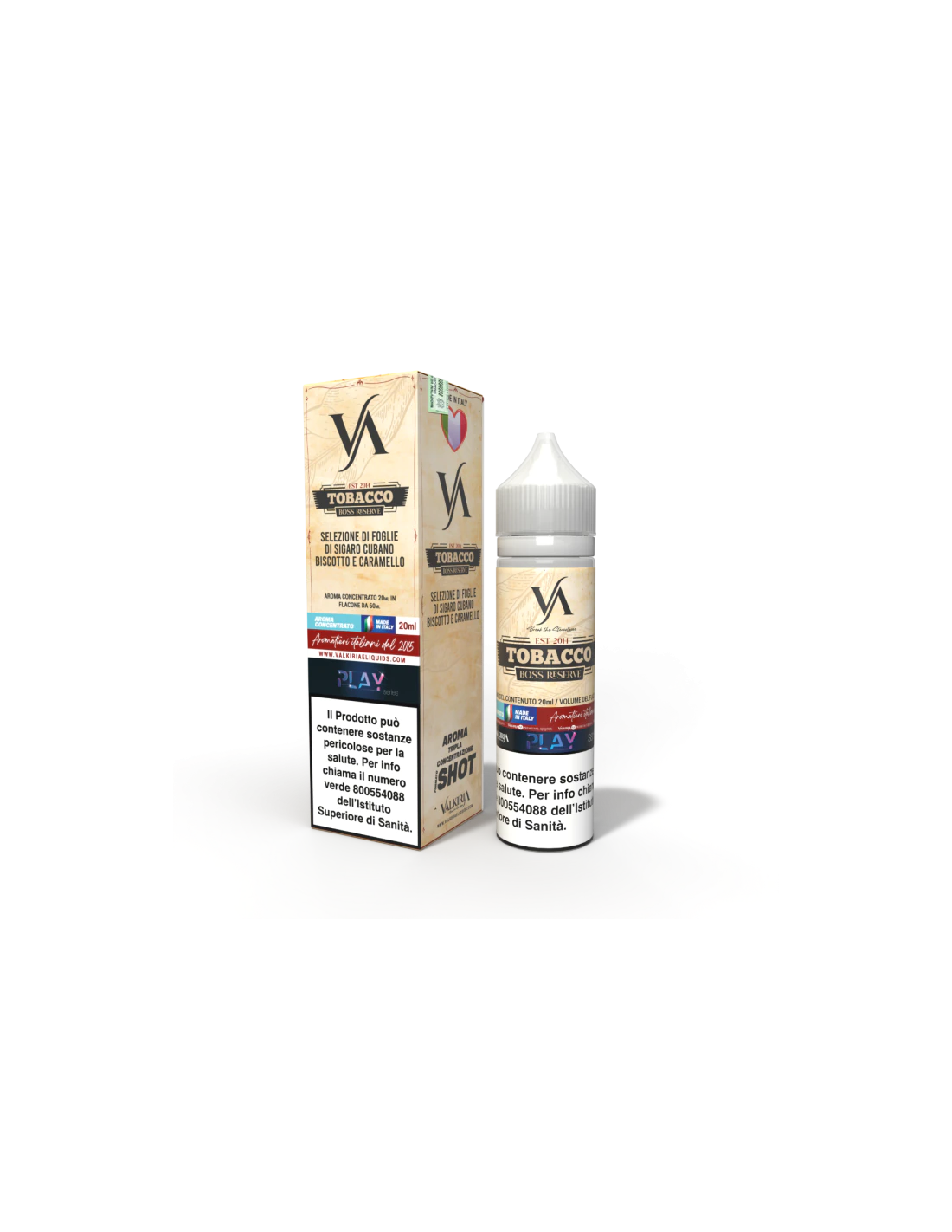 Tobacco Boss Reserve Play Aroma Shot 20ml 0mg - Valkiria in formato da 20ml è un Aroma Scomposto, formato per essere miscelato e diluito. Il sistema Shot permette di preparare con semplicità la tua miscela preferita. Sarà sufficiente aggiungere 30/40ml di base VG Glicerina Vegetale all’aroma shot per ottenere un liquido pronto da svapare.