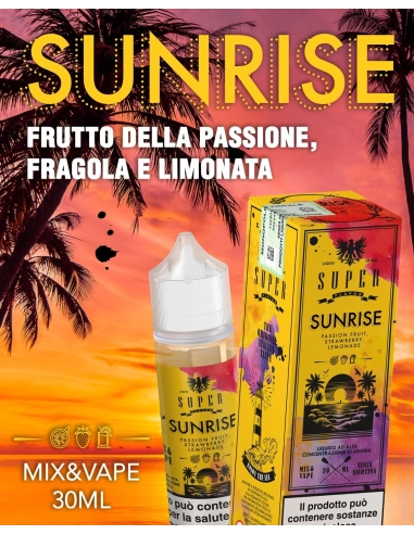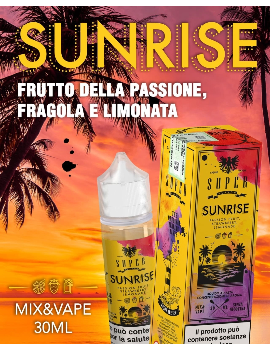 Sunrise Mix&Vape 30 ml - Vaporart è il liquido ideale per gli amanti dei gusti fruttati e rinfrescanti. Questa miscela unisce la dolcezza tropicale del frutto della passione, la succosità della fragola e il tocco frizzante della limonata, creando un'esperienza di svapo fresca, avvolgente e irresistibile.